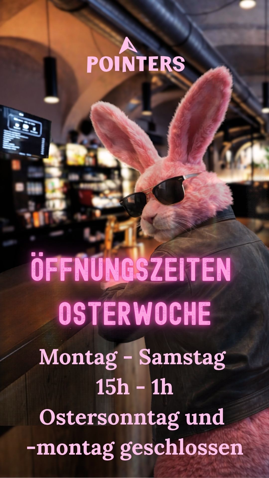 Resselgasse 5 | A-1040 Wien | +4315047345 | info@pointers.at | Opening hours: Monday - Friday 11:30 am until 1 am. Saturday from 3 pm. Sunday from 3 pm. |  IMPRESSUM  |  DE  |  EN  |  Facebook Link  |  Instagram Link